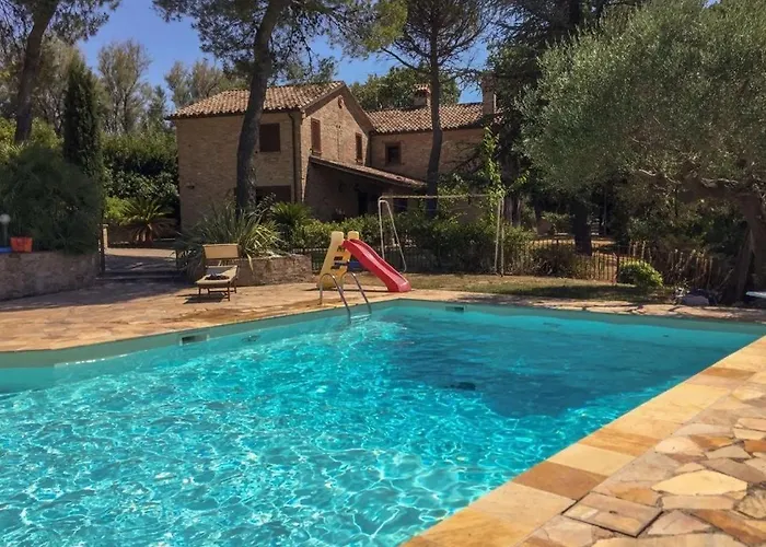 The view of the garden can be admired from the villa. The Pesaro accommodation comes with a bathroom with a bidet, a hot tub, and a separate toilet. Hair dryers and bath sheets are included for added comfort.